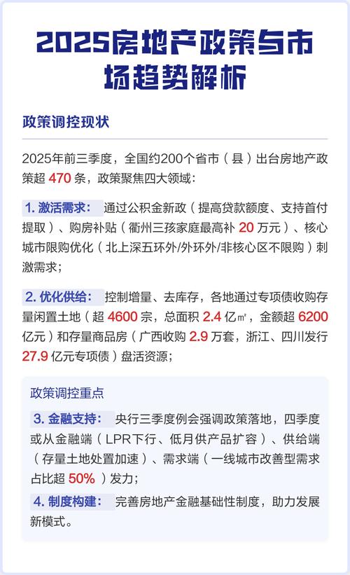 2025中国房地产政策将如何影响市场? 第一阶段:上半年“因地施策”,以“去库存”为核心 背景: 经过2025-2025年的调整,中国大部分三四线城市及部分二线城市的房地产市场库存高企,销售低迷,对地方经济和金融稳定构成了压力,中央政府将“去库存”确立为2025年房地产调控的首要任务。(图片来源网络,侵删) 核心政策与特点: 中央定调,地...