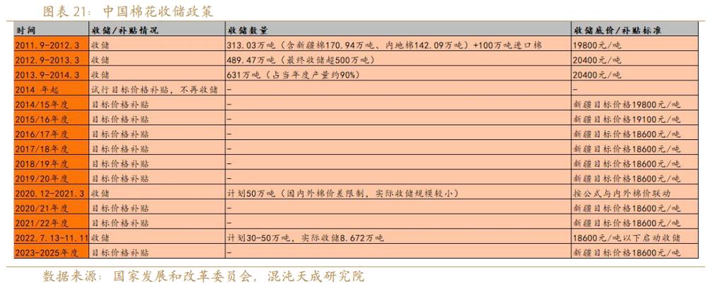 - 国家决定在新疆(中国棉花主产区)试点“目标价格补贴”政策,取代了原有的收储政策。