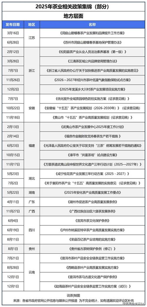 综合来看,2025年的茶叶政策法规环境呈现出以下几个鲜明特点: