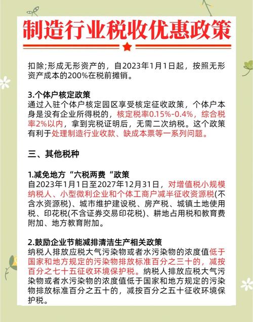- 小规模纳税人增值税征收率从3%降至1%(截至2027年底)。