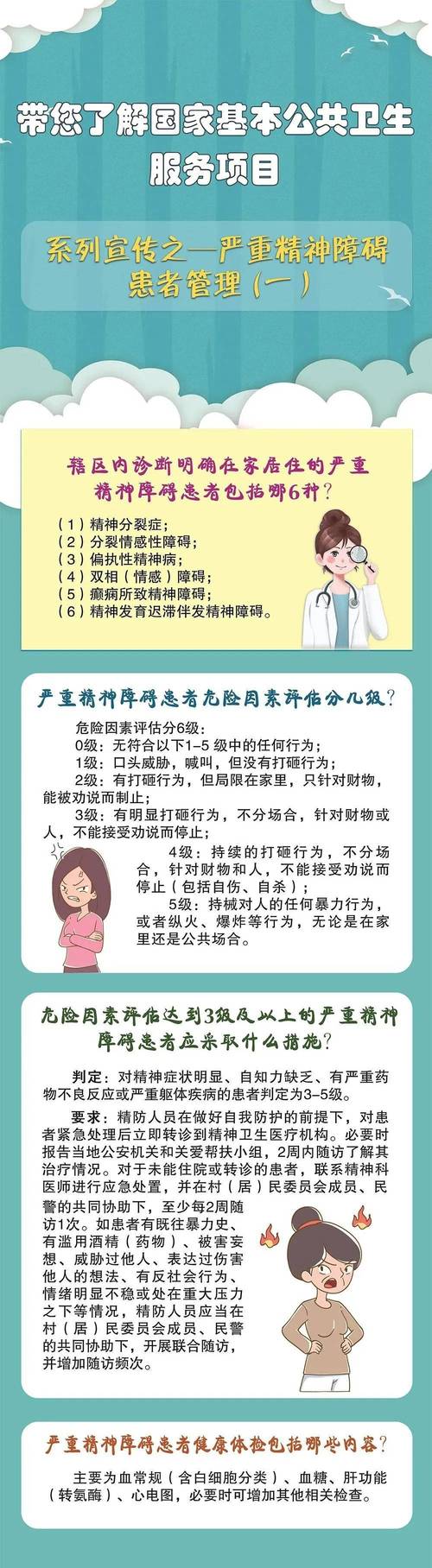 - “关口前移”:强调早期识别、干预和随访管理,家庭医生签约服务中,将严重精神障碍患者作为重点人群。