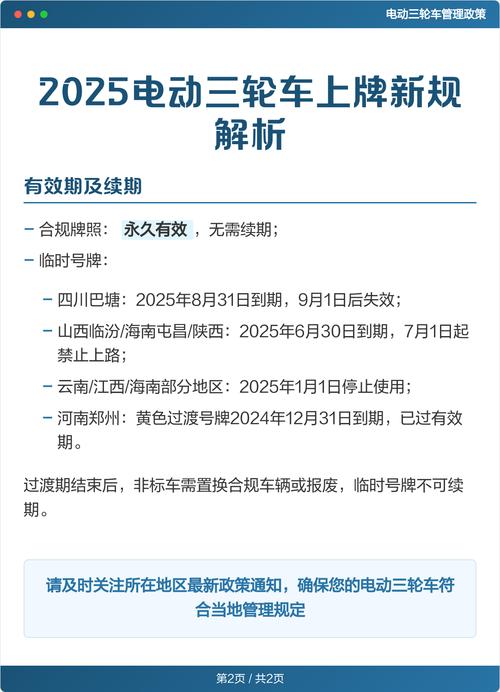 这是2025年最核心、影响最广的政策,各地政府(尤其是三四线城市和县城)纷纷出台规定,要求电动三轮车必须上牌才能合法上路。