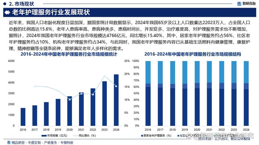 护理行业现状如何,未来趋势怎样? 【深度解析】护理行业现状及发展趋势分析:黄金赛道崛起,机遇与挑战并存! 随着中国社会老龄化加剧、健康意识提升及政策红利持续释放,护理行业正迎来前所未有的发展机遇,本文将从护理行业的现状痛点入手,深入剖析其核心驱动力,并对未来发展趋势进行前瞻性分析,为从业者、投资者及相关关注者提供有价值的参考。(图片...
