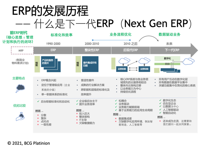 ERP的演变可以大致分为以下几个关键阶段,每个阶段都反映了当时的技术水平和企业管理思想的进步。