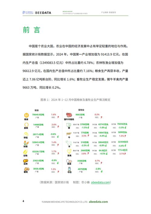 - 数字农业加速发展:物联网、大数据、人工智能、无人机等技术开始在农业领域规模化应用,提升了生产效率和精准化管理水平。