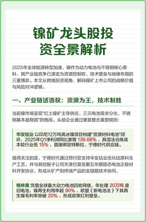 中国的镍矿石贸易政策是一部浓缩的“国家资源战略史”,它以保障国家产业安全为根本出发点,通过关税、产业、环保三大政策工具的组合拳,成功地将一个曾经高度依赖进口的初级原材料领域,重塑为以海外资源基地为依托、以国内高端制造为龙头的、具有全球竞争力的完整产业链,对于相关企业而言,理解并适应这些政策,是其在复杂多变的市场环境中生存和发展的关键。