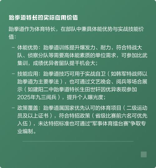 - 体教融合: 国家推动体育和教育深度融合,跆拳道进入校园,不仅作为体育课内容,也作为德育教育的一部分,帮助青少年培养坚韧不拔的意志品质和良好的行为规范,许多高校也设立了跆拳道高水平运动队或特长生招生通道。