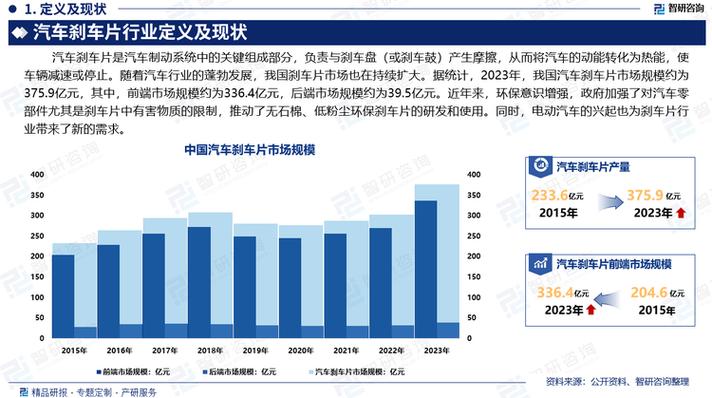 - 驱动因素:全球汽车保有量持续增加,尤其是新能源汽车市场的爆发式增长,直接带动了刹车片的需求,尽管传统燃油车市场趋于饱和,但庞大的存量市场为售后维修领域提供了稳定的需求。