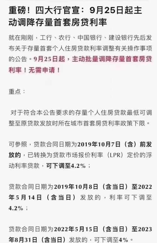 - 对于首套房和改善型住房的认定标准放宽,部分银行已执行“认房不认贷”政策,降低了首付比例。