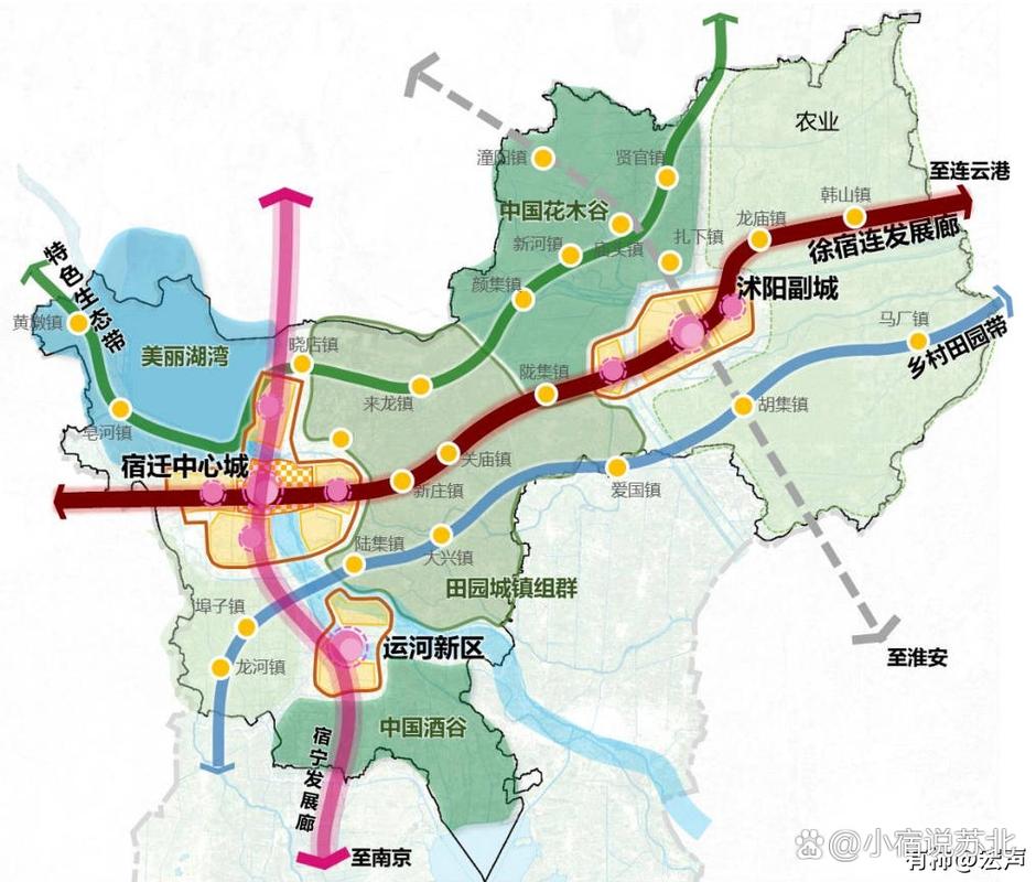 - 县域发展:沭阳(电商花木)、泗阳(绿色纺织)、泗洪(生态旅游)等县域将依托自身特色,形成与中心城区功能互补、生态联动的特色节点。