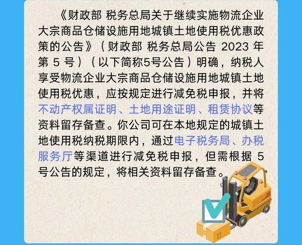 - 困难减免: 对于经营确有困难的物流企业,可向税务机关申请减免房产税和城镇土地使用税。